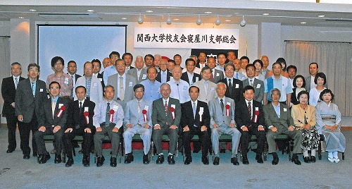 本部からは田中義昭副会長・畑勝美事務局長代行、北河内地区近隣の各支部、寝屋川市役所千里会それぞれの幹部のご出席を戴き、市内在住の校友37名と家族5名が参加した。