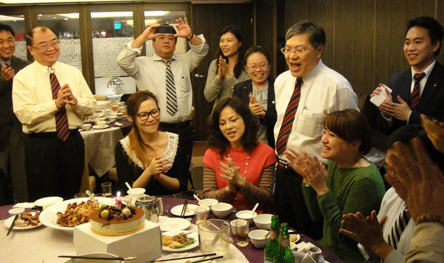 関大台湾OB会(李銘坤会長)は12月21日、今年度第六回例会を開催した。今回の例会では関西大学国際部より池田佳子先生と横山隆太さんのご出席をいただき、過去最多の総勢26人が出席し校友同士の絆を深めた。関大台湾OB会では二ヶ月に一度は例会を設けるなど精力的に活動を行っており、最近では例会を開催する度に校友の数が過去最多記録を更新していることでもここ台湾で校友同士の絆の深さと母校を愛する気持ちの強さが感じられる。何より関大台湾OB会の特色は、台湾に駐在している日本人校友と留学生の台湾人交友が同じ同窓会に組織していることである。そのことから、例会 では中国語・日本語が入り混 じる。左の人と話す時は日本語で話し、右を向けば中国語を話す。美味しい料理を皆で囲んで、先輩方の力強い笑い声があちこちから聞こえるこの例会で、私も元気をもらえる。二ヶ月に一度あるこの家族と会うような温かい空間が私はとても好きだ。今回の例会では大学院時代にお世話になった池田先生とも再会することが出来た。現在国際部と台北で新たな繋がりが進行しているということで、今後より台湾と関西大学学生の交流が密になっていっていくかと思うと私自身大変に嬉しく思った。私は参加出来なかったが、10人ほどが二次会に参加 したそうで、空けたウイスキーのボトルは六本半。どれほどの盛り上がりだったのか大変に興味深い。次回は私も社会勉強のために参加 してみたく思い 、いずれ皆さんにその様子を紹介出来たらと思う。