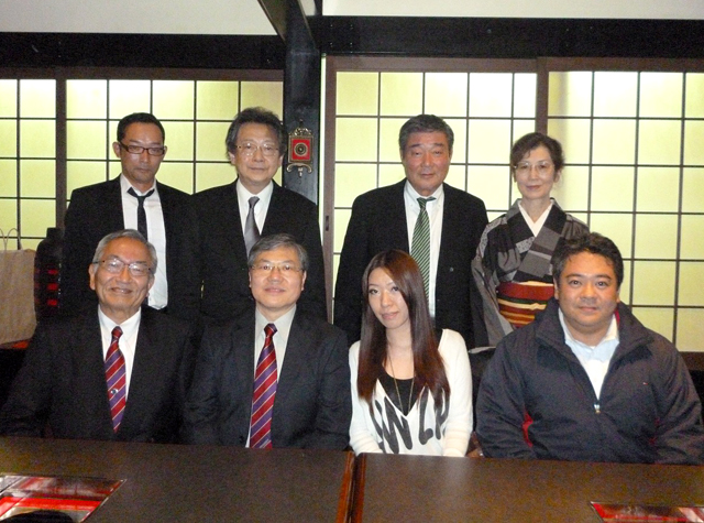 夕方からは、校友会より寺内会長、三木広報部長、渡邊組織部長、東郷事務局長、奥田事務局課長が参加し、また先方からは李会長とご友人、そして、在日本の留学生OB会長である李 宗翰氏にもご参加いただき、梅田・知慕里にて交歓会を開催した。知慕里は老舗のしゃぶしゃぶの名店であり、李会長曰く、嘗ては台湾留学生の溜り場のひとつであったという。当方はそれを知らず、李会長としては非常に懐かしく思われ、大変喜ばしい偶然であった。交歓会では、校友会と台湾OB会の将来や、双方のネットワークの構築、交流事業などについて協議し、また、国際部の留学生フェアなどに協力いただいている関係上、大学の国際戦略、留学生の獲得、就職支援などについて活発な意見交換を行った。