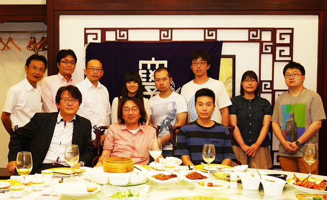 当日は、関西大学と復旦大学の国際交流協定に基づいて、復旦大学の社会発展・公共政策学院に滞在している高増明社会学部教授と、15日から19日まで上海を訪問した関大大学院生4人を迎え入れ、総勢13人が参集、楽しい一時を過ごす事ができた。(山本震一)