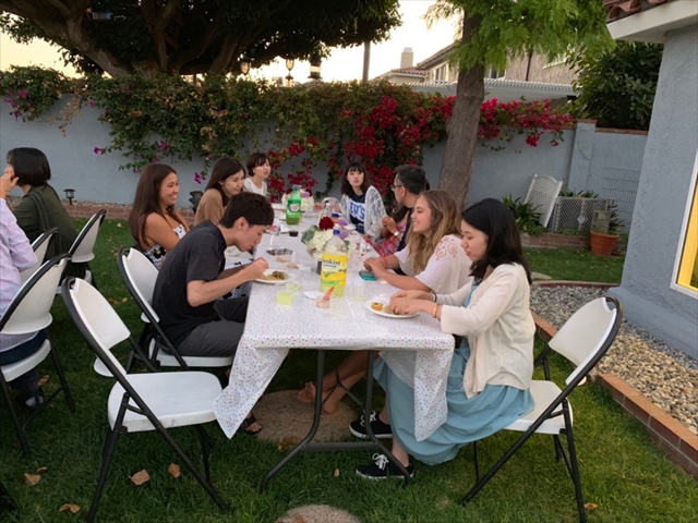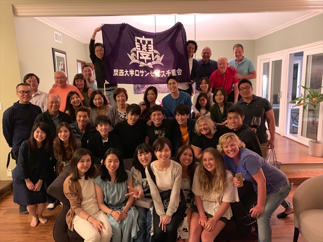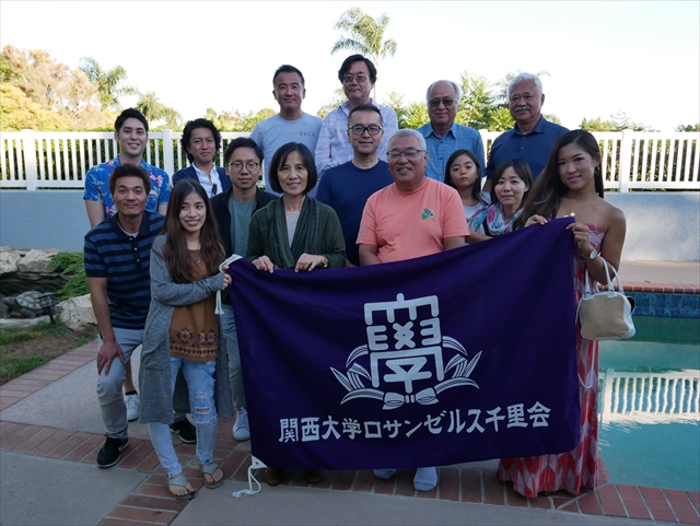 8月10日、ロサンゼルス千里会武田氏の邸宅にて15時より第一部として同窓会を開催し、18時から第二部として関西大学キャリアセンター主催の国際インターンシップ参加学生9人とキャリアセンター職員の松本さんを迎えて懇親会を開催した。