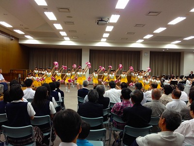 また総会では、チアリーダーによる華やかな演舞、吹奏楽部の演奏が会場に花を添えクライマックスを迎えた。
