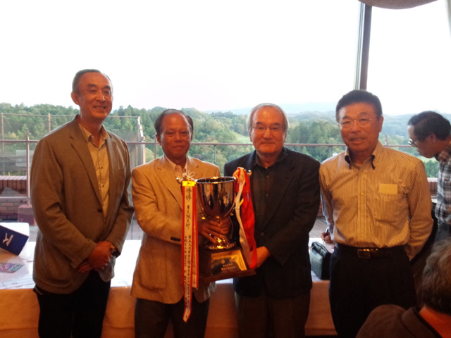 プレー終了後、西野あきら校友の乾杯のもと成績発表と懇親会が盛大に行われた。その結果、団体優勝は松原支部で、個人優勝も松原支部の山下友一氏が獲得された。次回は平野支部が担当での開催となる。