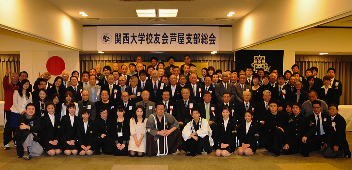 2月7日に植田芳光校友会副会長をはじめ、近隣8支部と応援団OB千成会や女子秀麗会からご来賓を迎え、応援団を含む現役学生28人、支部校友、総勢100人で27年度芦屋支部(直林法廣支部長)総会をホテル竹園芦屋で開催した。
