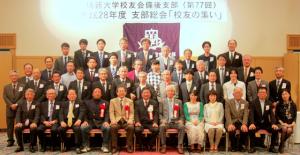 11月5日に尾道市のグリーンヒルホテル尾道に、校友会本部から田中義昭副会長、岡山支部から野上啓治幹事らの出席をいただき、まちかど寄席出演者、校友合わせて総勢50人が集まって第77回総会「校友の集い」を開催した。