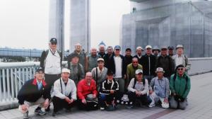 今回も小雨模様だったが、23人が参加した。JR「川西池田」駅から出発した一行は、神戸「舞子」駅で下車し、近くの「海上プロムナード」なる施設で、目前の明石海峡大橋の雄大な眺めを堪能した。見学を終えて海岸沿いを散策したが、雨が降りそうになり、途中で駅に戻りベンチで昼食をとった。