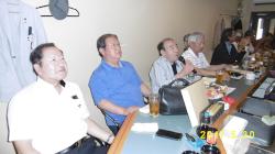 学歌流れる会場に集合。最初に全員で学歌斉唱のあと、西出弘秋「カラオケ友の会」部会長挨拶では、幹事会(飯島明幹事・吉田常佳顧問・松浪啓一副顧問)の紹介があり、「生きがいを育む」「親睦を深める」「決してプロの歌手を目指さない」「なんで歌手になれへんの?と言われること」という会の趣旨の説明があった。