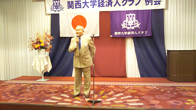 経済人クラブ(生田圭一会長)第215回例会が、9月11日に大阪新阪急ホテルで開催され、クラブ名誉顧問の上原洋允法人顧問、同名誉副会長の芝井敬司学長、同顧問の寺内俊太郎校友会長らの来賓と特別参加者を含め48人が出席した。