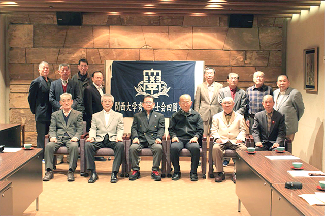 関大秀麗寮に在寮した卒業生の組織秀麗寮士会(市場康雄会長=44法)の四国支部(三宅正隆支部長=42経)の29年度(第13回)総会が、11月5~6日の1泊2日で道後温泉大和屋本店で開催された。本部より市場寮士会々長を迎え、三宅支部長はじめ会員は総勢14人が集いました。