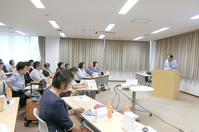 7月14日に千里山キャンパスの校友・父母会館で、女子秀麗会(仁井ひろみ会長)の第24回楽塾があり、近畿大学薬学総合研究所教授・森川敏生先生のお話を伺いました。