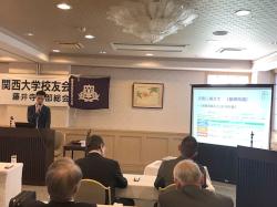 全員の集合写真撮影のあと懇親会となり、本間副支部長の司会で進行。校友会本部奥田課長の乾杯の音頭で会はスタートした。和やかな和気藹々と歓談が進む中、各支部来賓のご挨拶で会は進み、逍遙歌は奥田課長の力強い口上で、一同は輪になり、途中ハプニングもあったが無事、総会を終了した。