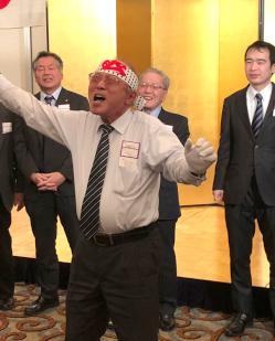 北町幹事長司会進行の下、まずは学歌斉唱でスタート。続いて川部支部長から「大学受験者ランキングでは、マグロで有名な大学に遅れを取っているが、如何に巣立っていくかが重要である」との内容の挨拶がありました。