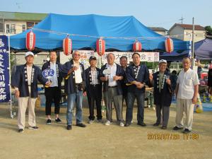 昨年は、あいにくの台風で納涼祭は中止となったが今年は大成功を、と地元自治会が中心となって開催された。川西支部も地域や社会に貢献することをめざし、併せて支部校友の増強や掘り起しを図る機会として取り組んだ。