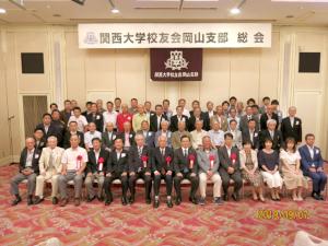 岡山支部第63回岡山支部総会 初参加者12人でフレッシュに 2019年09月07日 第63回岡山支部総会をピュアリティまきびで開催。芝井敬司学長、安部善博常務理事、広島支部岡本支部長、備後支部平櫛支部長・加納代表幹事、香川支部田井副支部長をご来賓として、総勢62人に参加いただきました。 また、初参加者が近年最多となる12人で、とてもフレッシュな総会となりました。初参加者への質問タイム、お楽しみ抽選会や当日のゴルフ大会の成績発表等で大いに交流を深めました。 来年の第64回令和2年(2020年)総会は、9月5日(土)です。校友の皆さまぜひご参加下さい。 (小林浩一)