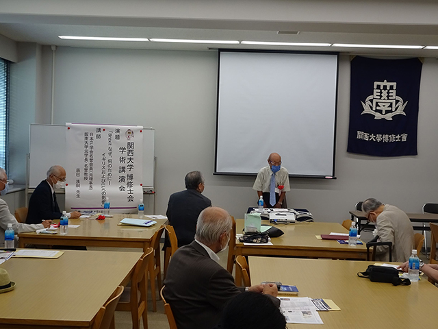 次いで本会理事でもある辰巳浅嗣阪南大学名誉教授(元学長)・日本EU学会名誉会員(元理事長)による学術講演「Brexit なぜ、なんのために?-イギリスおよびEUへの影響」を開催。「イギリスはなぜ、なんのためにEUを離脱しようとしたのか、それがイギリスやEUにどんな影響を及ぼすのか、今後の日本とイギリスの関係はどうなるのか」といった諸点について、豊富な学問と経験をもとにわかりやすく講演いただいた。まず、離脱にかかわった3人の首相の対応についての説明があり、旧ECおよびEUでのイギリスの独特な立場やEUからの脱退条項などについて取り上げられた。さらに、国家主権や産業政策・「緊密な同盟」関係・移民政策など、ヨーロッパの主権国家の抱える問題を解説された。イギリスの離脱の影響についても、イギリスにとってのメリットとデメリットを、予算分担金や安全保障・産業・対外政策・市場の側面から平易に説明いただいた。最後に、Brexit後における日本とイギリスの関係について触れられ、近年の気候変動問題や自国第一主義、自由貿易体制の維持などにも言及された。その後の質疑も活発で、大変有意義な学術講演会であった。