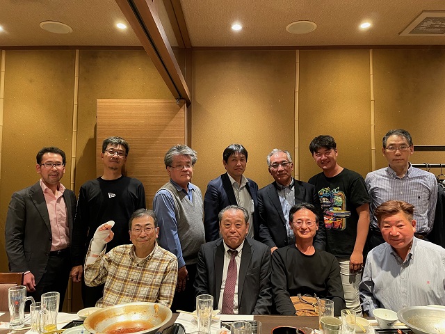 和気あいあいと封入作業をしていたところ、忘年会の予約時間が迫っていることに気づき。。。急遽、超特急で(しかし、もちろん正確に)封入作業を完了させて、予定どおり近くの忘年会会場に移動することができました。忘年会から駆けつけてくれた支部会員も交えて、温かいしゃぶしゃぶの鍋を囲みながら、ビールやハイボールなどが次々に注文され、楽しい会話は尽きることがありませんでした。外の寒さが信じられないほど、会場内は楽しく温かい雰囲気に包まれていました。