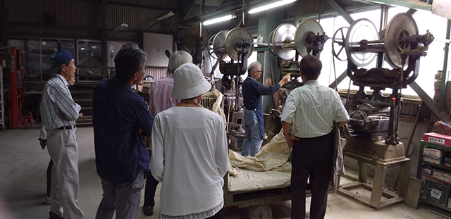 ③次に、登里製瓦(支部長経営)の工場見学。実際に瓦の制作の実演をしていただきました。