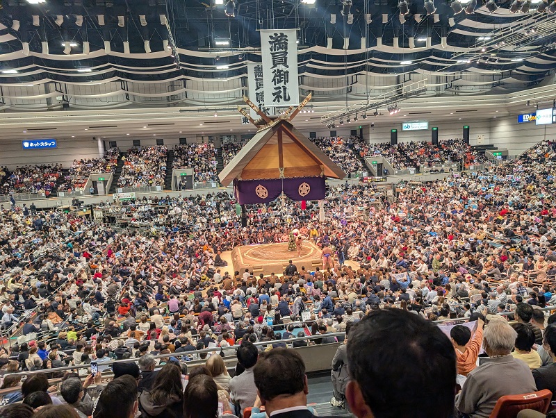 この日の取組では惜しくも黒星となりましたが、会場には安青錦関のこれまでの歩みを知る校友の思いがあふれ、関大関係者が一体となって声援を送る姿は、周囲の注目を集めるほどの一体感に包まれました。