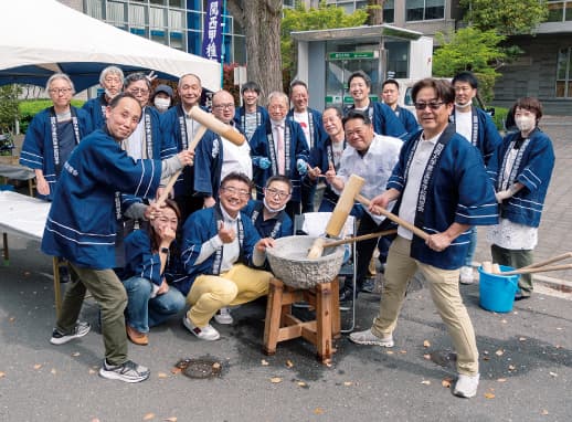 餅つきパフォーマンス、ぜんざい振る舞い