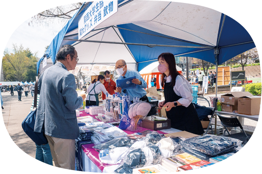 関西大学の校章入り“三笠焼き” やわらび餅、くるみ餅、いちご大福などの和菓子販売
