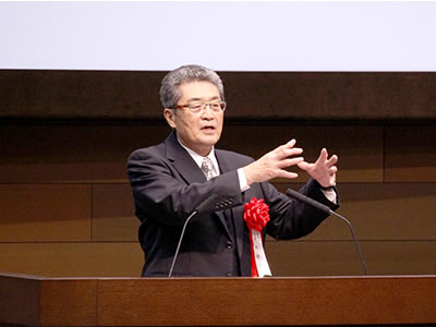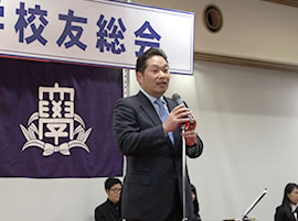 寺内校友会長よりご来場の皆様へご挨拶の後、ご来賓を代表して池内理事長・楠見学長よりご挨拶を頂戴しました。