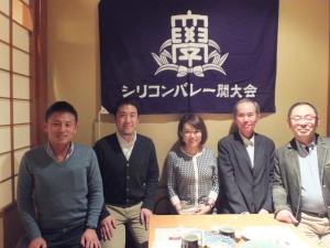 シリコンバレー関大会(岸田陽世志会長)は、2月1日に「Hatcho Japanese Cuisine」で、キャリアセンターの宇惠勝也所長と同事務局の原徹次長をお迎えし、懇親会を開催した。