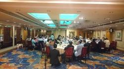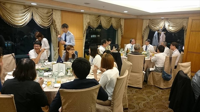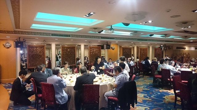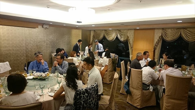 一行は、8月25日(金)に桃園国際空港に到着後、専用バスにて台中金典ホテルへ。台中の懇親会は当ホテルの15階の金園レストランで開催。母校の協定校である靜宜大学から王副學長など6人の先生方がゲストとして華を添えていただき、また留学生別科の新入生2人も参加するなど、合計30人が出席しての大交流会となりました。