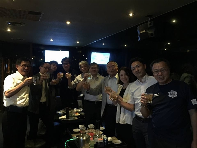毎年のことながら交歓は大いに盛り上がり、あっという間に時間は過ぎ、来年の8月26日の再会を約束して閉会となりました。その後は、関大の旗が常時掲げられている"TOPAZ"で約20名が集結して二次会となり、最後は寺内会長から「これを拡大してフェスティバルin台北開催を目指そう」と宣言されて散会となりました。