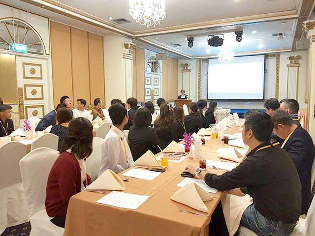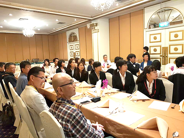9月8日(土)スクンビットのアリストンホテルボールルームで研修プログラムに参加の現役学生11人と泰国千里会10人そして元留学生5人にて池内紀夫先輩による講演会と懇親会を実施。学生たちは真剣なまなざしで講演を聴き、そして予定時間オーバーするほどの質疑応答となり大変有意義な研修ができたと感じている。