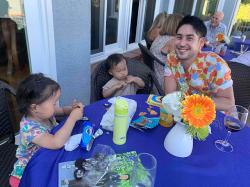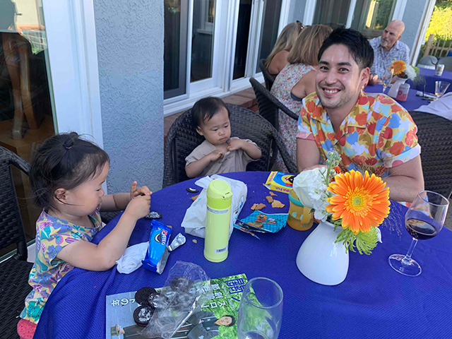 PVの武田邸にて、「関大ファミリーの集い」を開催しました。コロナ禍以降、長らく大勢で集まる機会を持てなかったのですが、校友とそのファミリー合わせて23人、加えて武田さんの近所の仲間やご友人ら、総勢40人強が集合。8月最後の週末をわいわいがやがや、とても楽しい時間を過ごしました。時間が経つのを忘れてしまい、ついつい全体写真と豪華なディナーの写真を撮り忘れてしまったのが悔やまれます。