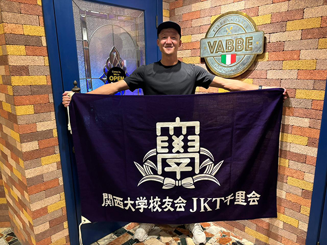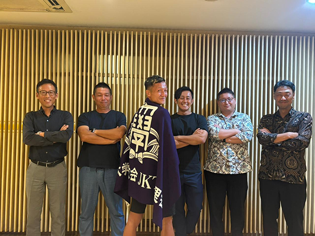 JKT千里会では、3月10日にインドネシアリーグのPersiba Balikpapan(パルシバ・バリクパパン)所属のプロサッカー選手、西原拓夢さん(平27学人間健)を迎えて懇親会を開催しました。