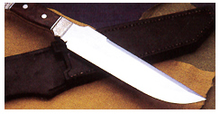 カスタムナイフのブレードの素料は、硬度、強靭性、耐食性の特性に加えて鑑賞に耐えるだけの美しさが求められ、日立金属株式会社が開発した粉末刃物鋼材(ZDP189)をカスタムナイフ用ブレード素材として開発しました。粉末刃物鋼材は、新しいタイプの刃物鋼材で、高硬度、高耐磨耗性、耐食性があり、さらに切れ味が良く、刃持ちも優れており、シャープなエッジラインの美しさ、鏡面仕上げの輝きの良さが特徴です。また、刃物の側面の加工性の良いZDP189を刃物鋼材で最も一般的なステンレス鋼材(ATS34)で挟んでサンドイッチ構造にした三層鋼材も開発しています。それぞれ全国のカスタムナイフメーカーから高い評価を得ています。