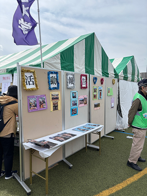 そしてブースには高く幟を掲げ校友会冊子で大学を、スナップ写真で支部校友会の活動状況を紹介し、共に関西大学のPRをさせていただきました。